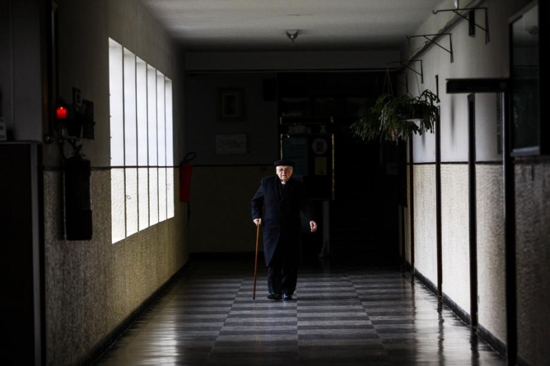 Ex-arcebispo de Curitiba, Dom Pedro Fedalto, caminha pelos corredores. Religioso vive no seminário desde 2004 (Foto: André Rodrigues // Gazeta do Povo)