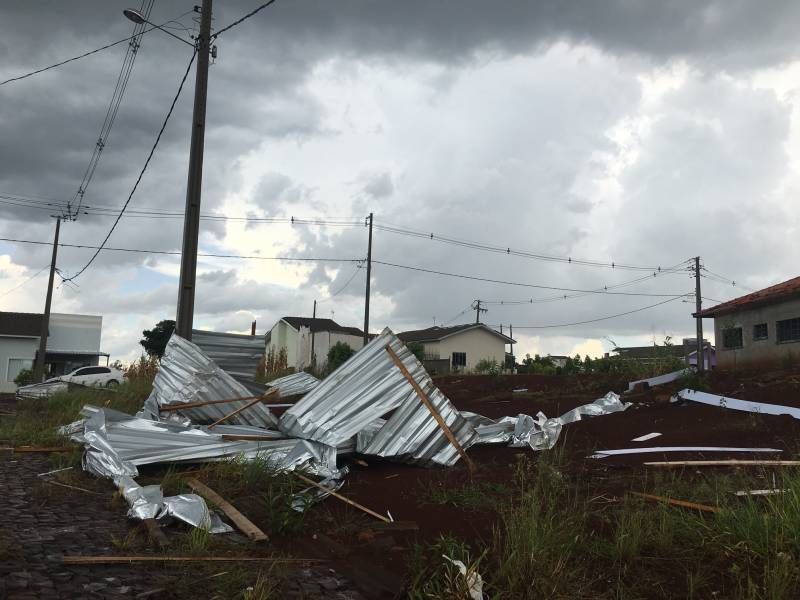 Uma ventania na tarde desta segunda-feira (25) na cidade de Ampére, na região Sudoeste do estado, provocou estragos em pelo menos 25 moradias e também nas obras da Escola Municipal João do Couto.