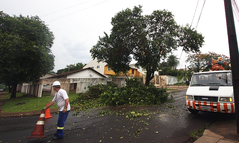 Em Paranavaí, no Noroeste, um árvore caiu sobre o para-brisa de um carro. O motorista não estava no veículo, que foi arrastado até o outro lado da rua pelo impacto.