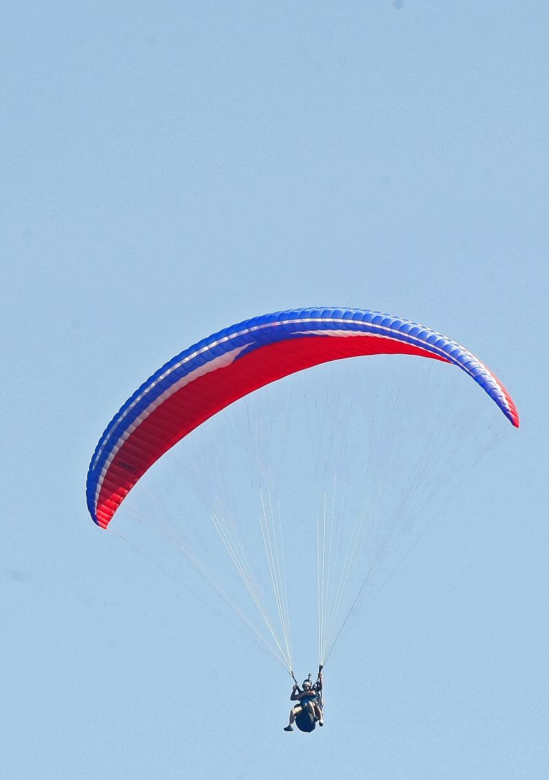 Foram três tentativas de decolar, sem sucesso. Não batia vento na vela, que acabou embolando e precisou ser reaberta. Num dos piques, a desistência ocorreu faltando apenas um metro para o precipício. Surge meia dúzia de ajudantes. Então, basta um puxão de Marcelo para que o paraglider assuma a posição vertical. O vento forte do morro iça o paraglider para cima quase em linha reta. O voo é bastante estável não há chacoalhão. Durante vinte minutos, dá-se voltas em frente ao morro, "surfando" a corrente de ar a uma velocidade que varia entre 18 e 60 km/h, conforme a posição em relação ao vento. As ondas do mar parecem se aproximar em câmera lenta, extinguindo-se aos pés de minúsculos guarda-sóis e veranistas imóveis. "É uma paz que Deus manda", define Marcelo.