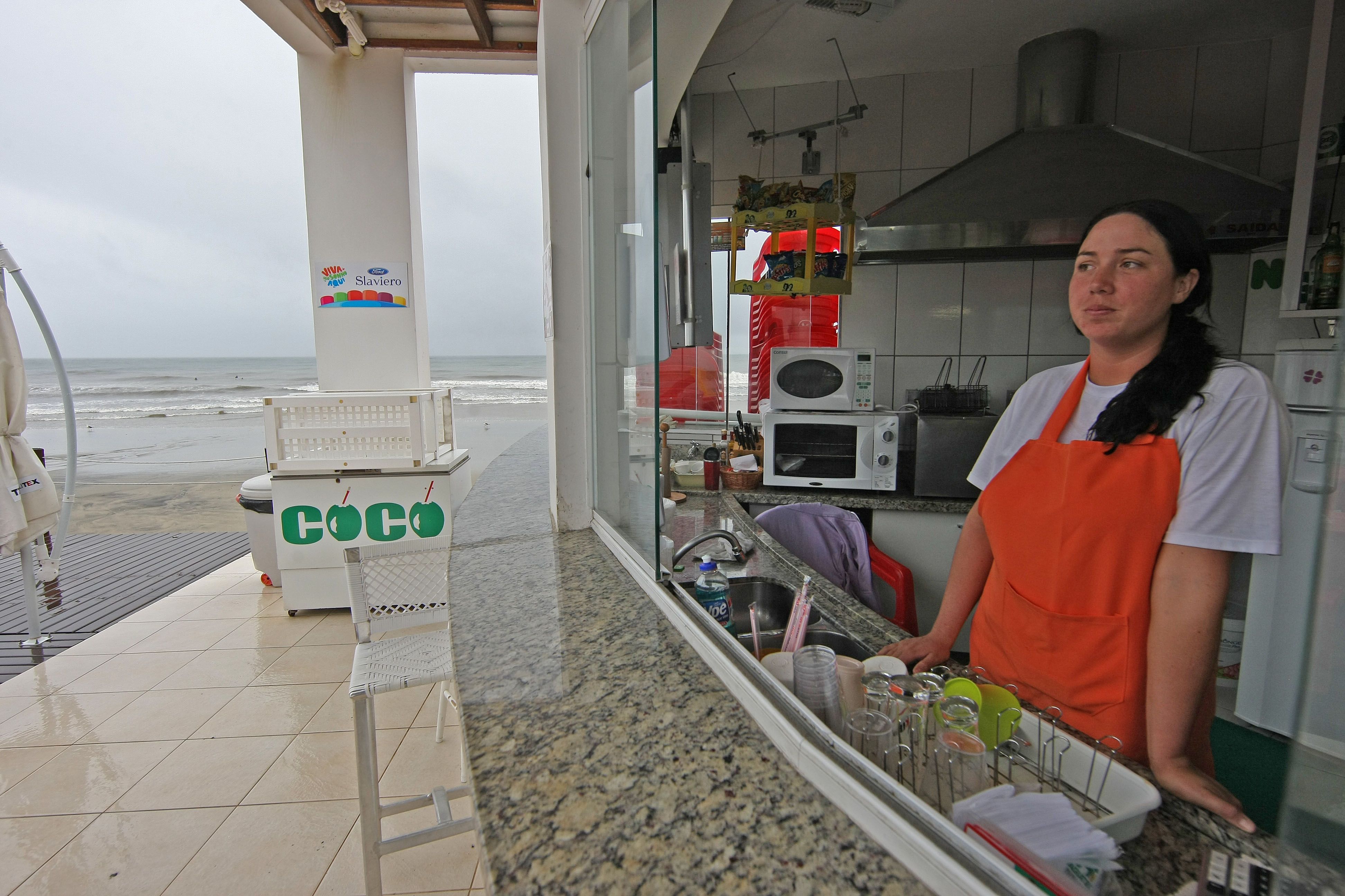 Um dos poucos quiosques abertos na praia, a atendente garantia apenas a vigilância do estabelecimento. "Não atendi nenhum cliente durante todo o dia. A gente abre só para tomar conta, para que não roubem ou quebrem qualquer coisa por aqui", conta Letícia de Moraes, funcionária do estabelecimento.