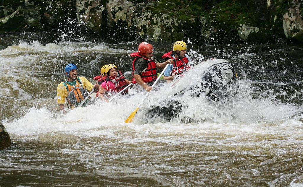 Na primeira "caída" o frio na barriga vira diversão. Dali em diante e, principalmente, depois de passar pela corredeira do Cadeado, o que se quer é mais. Por ali, Júlio prepara o pessoal para o chamado surfe na corredeira, quando todo mundo rema contra a correnteza de determinado ponto, fazendo com que ora o barco incline bastante, obrigando todo mundo a se segurar e remar ao mesmo tempo, ora afunde um pouco, deixando a água entrar quase pela cintura.