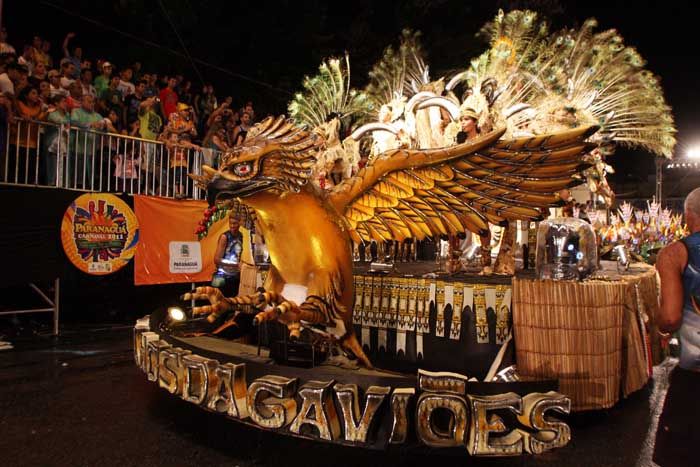 A noite deste domingo (6) foi de muita festa em Paranaguá com o desfile das escolas de samba do grupo especial. Ao todo, cinco agremiações entraram na Avenida Arthur de Abreu, no centro histórico da cidade. Com 2.080 componentes no total, as escolas agitaram milhares de espectadores da plateia.