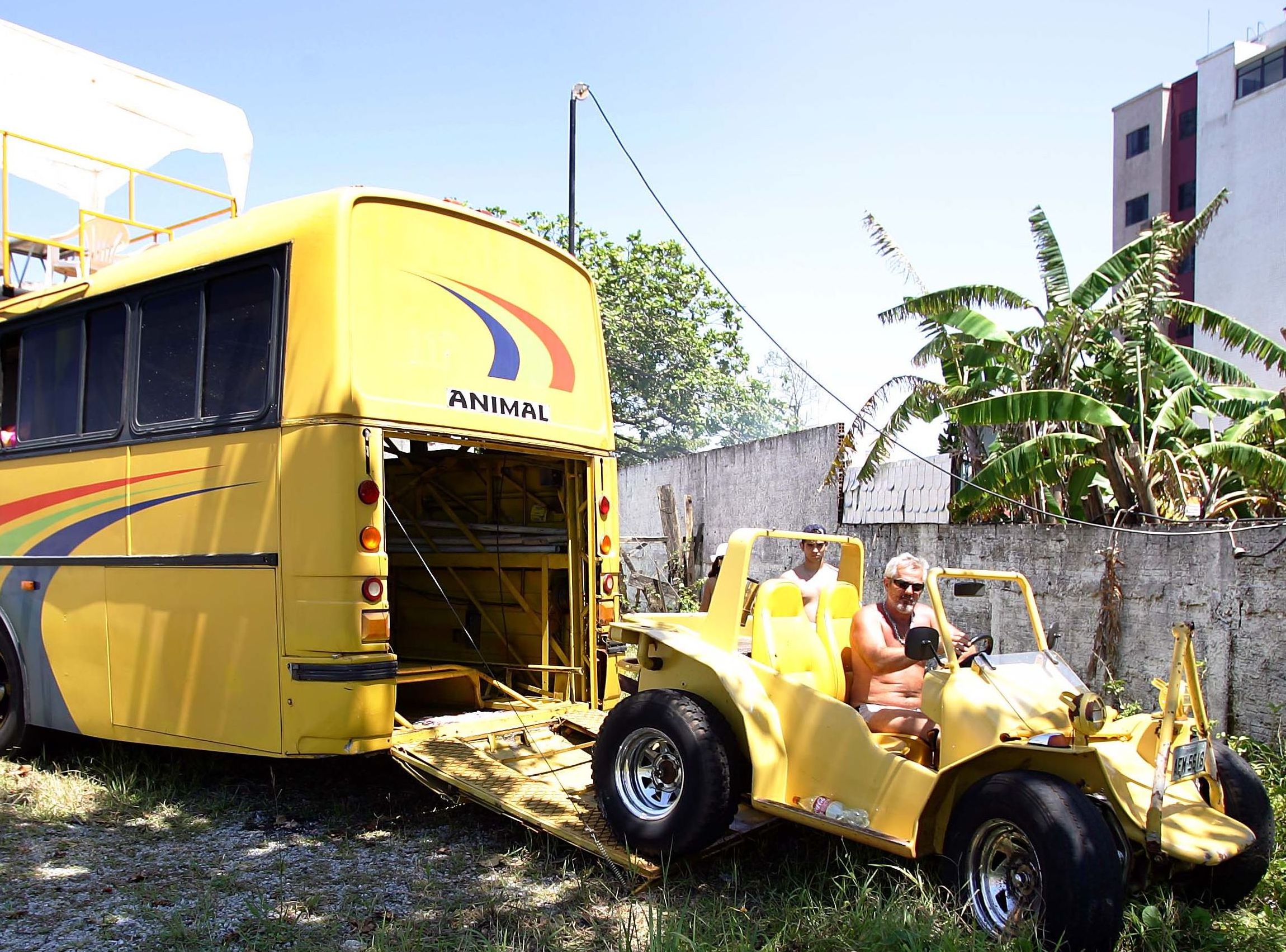 Para conseguir encontrar um ônibus alto o suficiente para caber os dois miniveículos, Lopes demorou cinco anos e pagou R$ 30 mil. Na parte traseira há um elevador hidráulico, também construído pelo empresário, que faz com que um bug possa ficar sobre o outro. Só que para sair é necessário apelar para uma janela lateral.