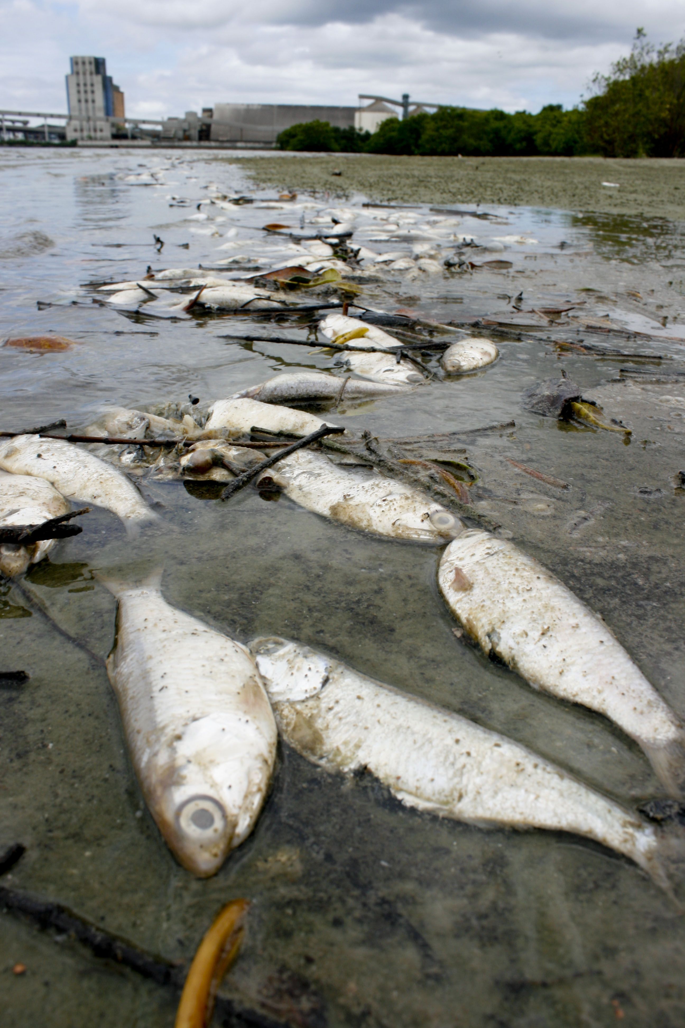 Na última segunda-feira (3), milhares de peixes, principalmente sardinhas xingós, apareceram mortos em Paranaguá. Pescadores relataram que desde quinta-feira (30), vinham sentindo cheiro forte na água e percebendo a morte dos animais.