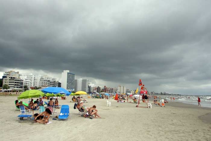 O domingo (30) é de tempo nublado no Litoral do Paraná. Os veranistas foram para a areia em boa quantidade, mas temendo que as nuvens carregadas provoquem chuva nas próximas horas.
