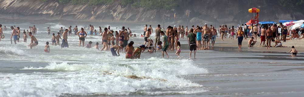 O sol, que apareceu tímido durante a manhã, brilhou com força nas praias paranaenses neste sábado (26). As areias ficaram lotadas e os veranistas procuram se refrescar no mar: houve filas para andar de caiaque e banana boat em Caiobá. A temperatura chegou a 30º C.