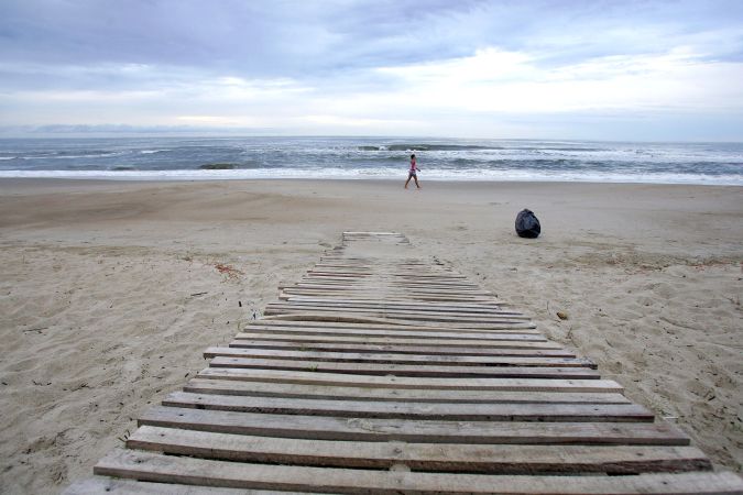 No início da manhã, o movimento na praia de Matinhos ainda era baixo, e havia poucos banhistas curtindo a água morna do mar. Quem estava na praia aproveitava mais para caminhar, pedalar ou então para pescar, como fazia o comerciário aposentado Altair Zanlorenzi, 68 anos, de Curitiba.