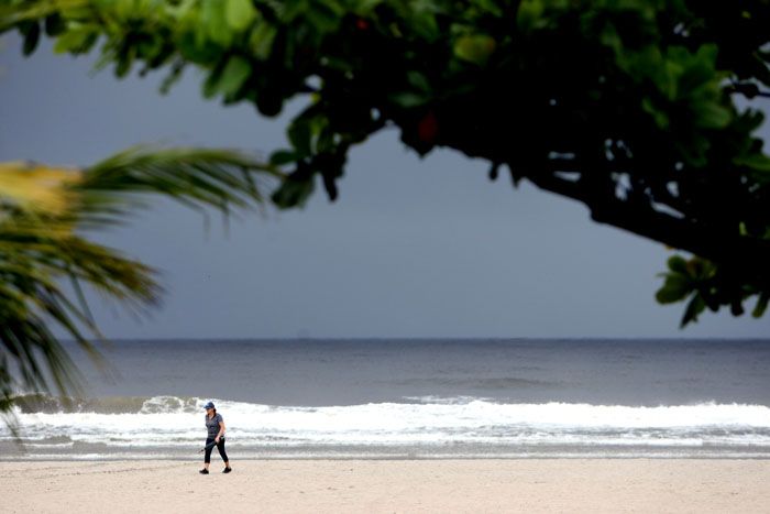 Poucos corajosos quiseram enfrentar a praia pela manhã. A empresária Orlanda Freitas, 37 anos, veio de Cassilândia (MS) e para fazer valer as 15 horas de viagem entrou no mar da praia de Matinhos até mesmo de roupa. "A água está bem morna, parece até que está saindo do chuveiro", compara. Acompanhada do irmão, do marido e da sobrinha, eles não quiseram perder tempo.