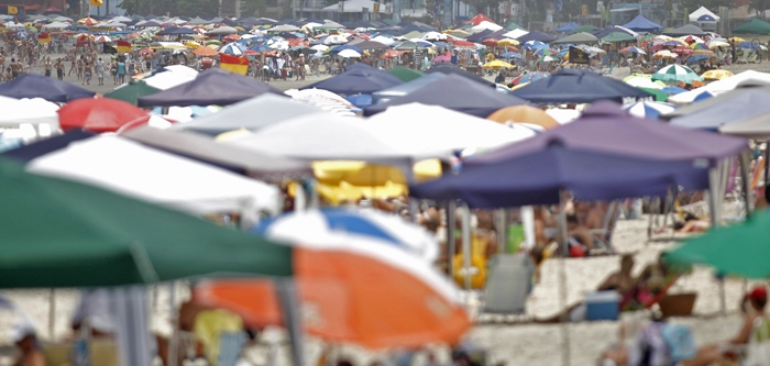 Após manhã de sol entre nuvens e mormaço, o sol forte na tarde deste sábado (15) atraiu milhares de veranistas para as areias. A temperatura nas praias chegou a 29ºC.