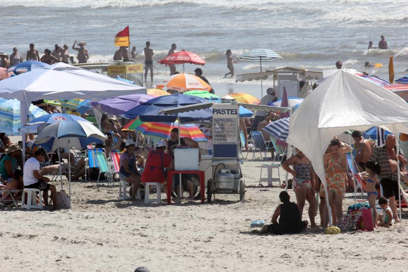A máxima em Matinhos, Guaratuba, Guaraqueçaba, Pontal do Paraná e Paranaguá é de 27 °C. Antonina e Morretes chegam a 28 °C durante o dia de hoje, de acordo com previsão do Instituto Tecnológico Simepar. É melhor aproveitar o sabadão na praia, porque a previsão é de chuva já para o domingo (13). As pancadas de chuva devem continuar durante a semana, segundo o Simepar. A temperatura nos próximos dias deve variar entre 20 °C e 28 °C em todo o Litoral. Praia cheia mesmo em local impróprio No balneário de Ipanema, em Pontal do Paraná, muitas pessoas dividem espaço na areia, mesmo próximo ao aviso de local impróprio para banho determinado pelo Instituto Ambiental do Paraná e atualizado todas as semanas durante a temporada.
