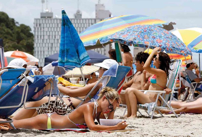 O sol brilhou forte ontem na praia de Caiobá (foto) e no restante do Litoral do Paraná até as 18 h. Após a forte chuva que caiu durante a noite de segunda-feira em Guaratuba choveu 38 mm o sol apareceu logo no início da manhã, com temperatura na média dos 24ºC nas praias. No início da tarde, os termômetros chegaram a marcar 26ºC. O tempo bastante abafado animou os veranistas, que lotaram a areia. Após as 18 h, no entanto, voltou a chover. Até o fim desta semana, quem está no Litoral vai encontrar sol entre nuvens, tempo abafado e chuvas isoladas.
