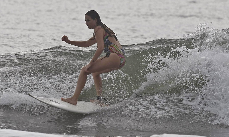 Tempo bom para a pequena Catarina Leão, de 1 ano, que ganha carona na bicicleta da mãe, a empresária Daniela Leão, 33 anos. Daniela aproveita o sol mais fraco para levar a filha na cadeirinha da bicileta para um passeio na orla, entre Matinhos e Caiobá. "Em Curitiba me exercito menos. Aqui dá para aproveitar para sair com ela (Catarina), que está curtindo sua primeira temporada na praia, ainda mais com esse ventinho", diz a mãe.