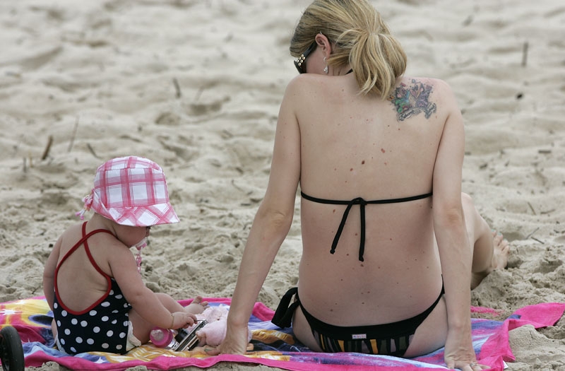 A secretária administrativa Fabiane Paz Mazer, de Londrina, aproveitou o domingo ainda tranqüilo nas praias para apresentar a praia à filha caçula, Eduarda, de sete meses, na companhia do marido, o gerente Danilo Mazer, da filha mais velha Gabrielle, de 2 anos, e o irmão Danilo Paz. A família chegou a Matinhos no sábado de Natal, logo após comemorar a data com os parentes.