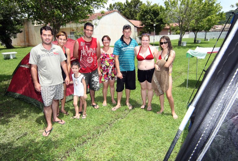 O casal Alisson Rodrigo Kutach, de 25 anos, e Emiliana Aparecida Kutach, de 31, convenceu familiares e amigos a embarcarem rumo a um acampamento em Matinhos, próximo à Praia Central. A van partiu de Ponta Grossa, nos Campos Gerais, com nove pessoas e quatro barracas. "Os mais experientes trouxeram os outros", afirma Emiliana. Além dos passeios na praia, o grupo se diverte jogando cartas e conversando. "Sempre trazemos algumas coisas para proporcionar mais conforto, como colchão inflável e sanduicheira", revela.