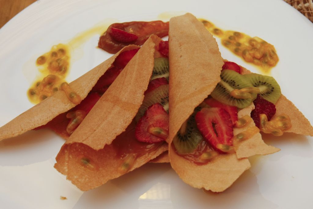 "Escolhi maracujá, morango, kiwi, que têm sabor azedo-adocicado para contrastar com o doce de leite. Mas pode-se usar qualquer outra fruta", fala a restaranteur.