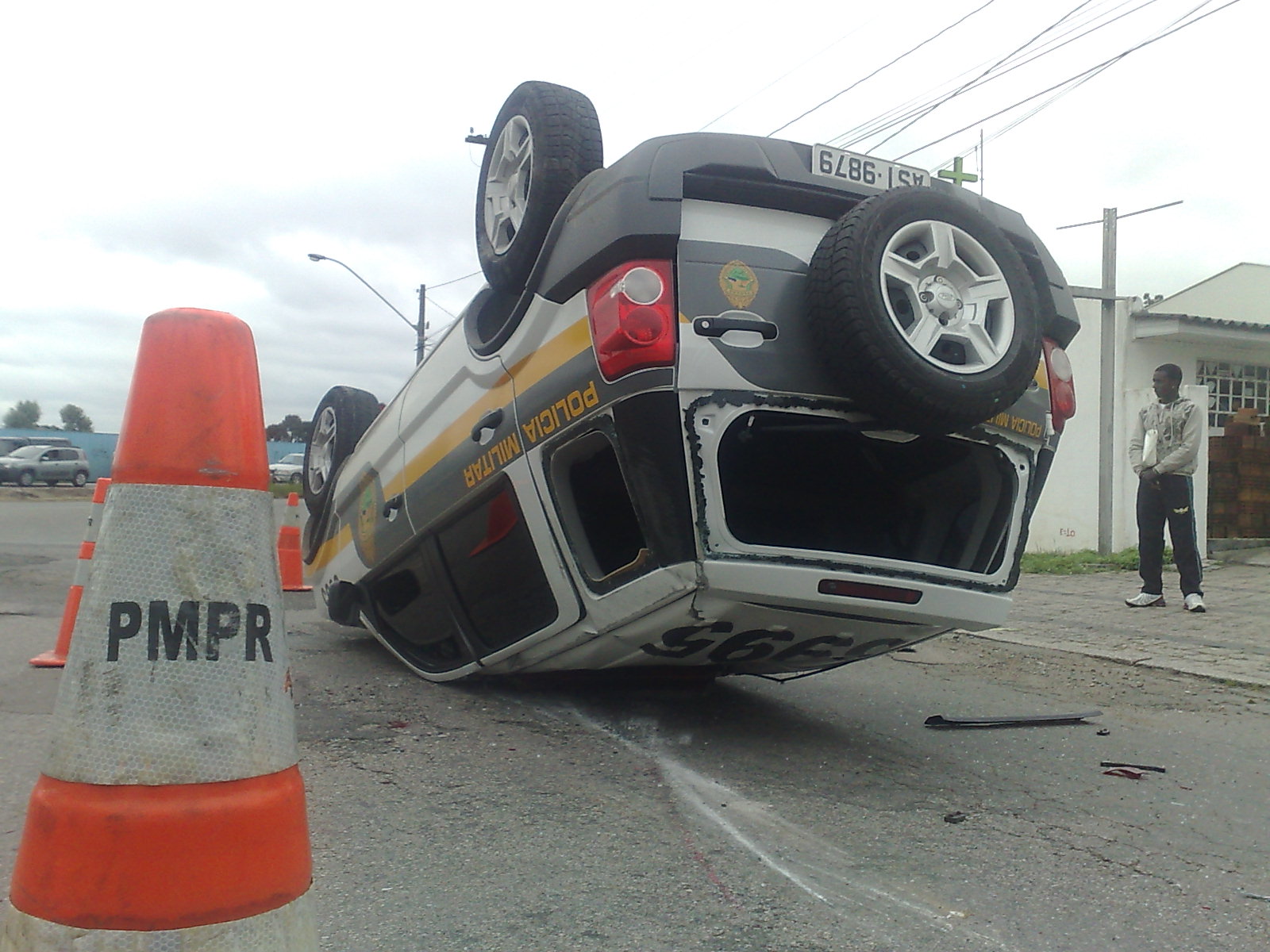 Um capotamento envolvendo uma viatura da Polícia Militar (PM) foi registrado na tarde desta quinta-feira (11) em Curitiba. O acidente ocorreu em um cruzamento do bairro Bacacheri, por volta das 16h.