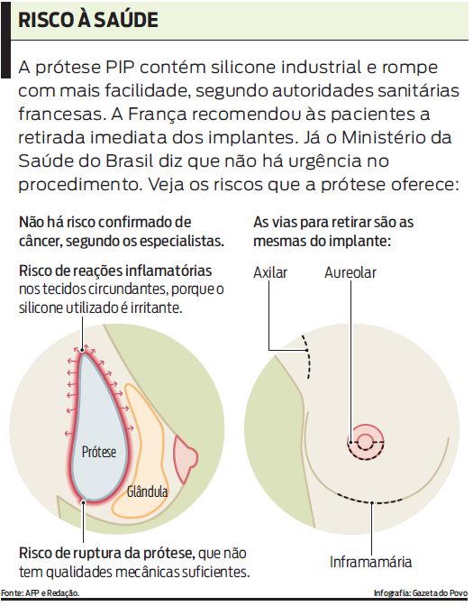 A venda do produto no mercado brasileiro foi suspensa em abril de 2010, logo depois da informação de que a prótese havia sido fabricada com um silicone que não é de uso médico. O estoque brasileiro é um dos maiores do mundo. Há duas semanas, diante dos resultados de testes apresentados por autoridades sanitárias francesas, a Anvisa cancelou o registro do produto. Desde 2010, a Anvisa registrou 12 notificações de pacientes relacionadas às próteses. No período, a agência registrou 94 reclamações de implantes mamários.