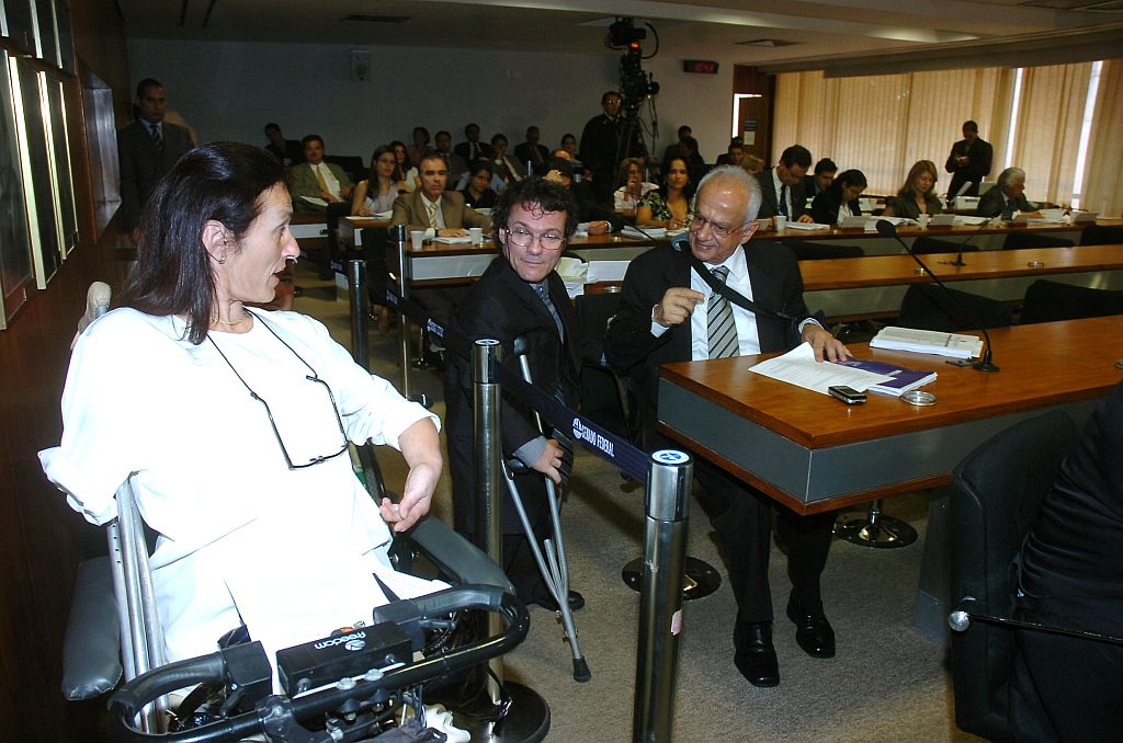 Cláudia convive com a síndrome não tem as duas pernas e os dois braços têm deficiência. "Queremos tentar sensibilizar os parlamentares para que nos ajudem com as emendas ao Orçamento de 2009, para que a gente possa ter esse dinheiro, para conseguir receber", explicou ela, que participou ontem de audiência pública sobre o assunto na Comissão de Direitos Humanos.