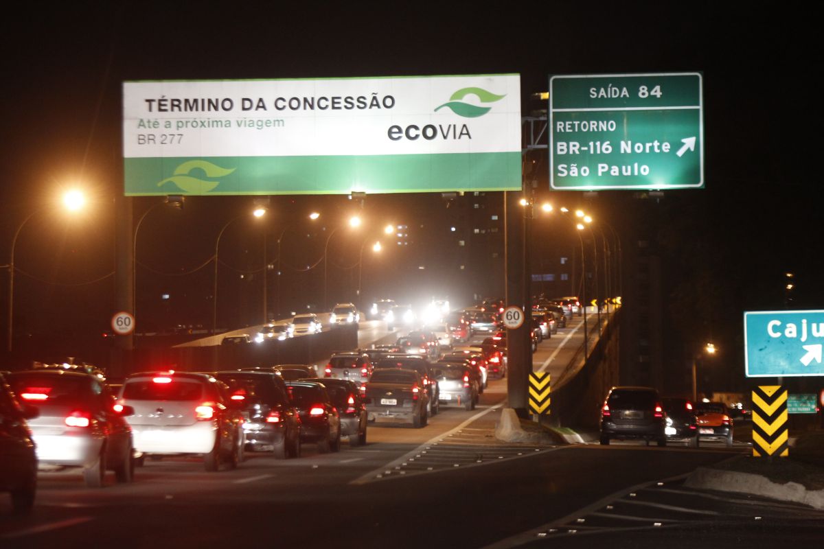 A BR-277, que faz a ligação entre o litoral paranaense e Curitiba, chegou a registrar pico de 1,8 mil veículos por hora na pista sentido capital, entre as 18 e 19 horas: movimento três vez maior em relação ao normal. Às 21 horas, o fluxo havia caído para 1,3 mil veículos por hora, movimento ainda considerado alto, mas que indicava tendência de queda. A previsão da Ecovia é de que, até o fim deste domingo, mais de 15 mil veículos tenham trafegado em direção a Curitiba. Ao longo da tarde, o fluxo foi normal no segmento, em ambos os sentidos.