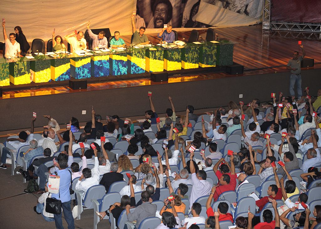 Embora tenha adotado o discurso de rumar para o centro a fim de garantir a adesão de mais partidos à campanha presidencial da ministra Dilma Rousseff, na prática o PT ontem deu uma forte guinada à esquerda. Durante o 4.º Congresso Nacional do Partido dos Trabalhadores, que termina hoje, em Brasília, os delegados petistas aprovaram uma série de propostas tradicionais da esquerda a serem implantadas caso o PT ganhe a eleição. Dentre elas está a redução da jornada de trabalho, o apoio incondicional ao polêmico Plano Nacional de Direitos Humanos, um maior controle dos veículos de comunicação e medidas para facilitar a desapropriação de terras.Dilma Rousseff não comentou ontem as resoluções aprovadas pelos delegados do partido, que podem vir a dificultar a formação de alianças. Mas, na prática, as determinações do partido nem sempre são seguidas. Em 2002, por exemplo, o então candidato a presidente Luiz Inácio Lula da Silva emitiu a Carta aos Brasileiros documento em que rompia com antigas teses do partido para assegurar a estabilidade econômica do país. Com a carta, Lula conquistou a confiança do empresariado.Empresários X SindicatosO Congresso petista aprovou a inclusão nas diretrizes para um futuro governo de Dilma a defesa da redução da jornada semanal das atuais 44 horas para 40 horas semanais o que opõe empresários e sindicalistas.