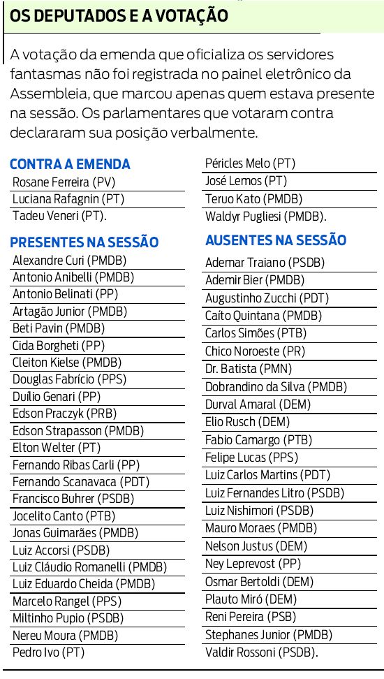 Para Tadeu Veneri, a emenda vai dificultar o controle dos funcionários comissionados da Assembleia. "Não há nenhuma garantia de que esses servidores não serão funcionários fantasmas", afirmou.