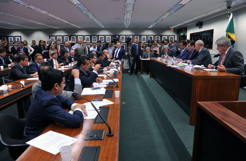 Numa tensa sessão, com diversos bate-bocas, deputados do PT e aliados fiéis ao governo acusaram o presidente do colegiado, João Arruda (PMDB-PR), de adotar manobras regimentais e de direcionar as votações de acordo com as vontades do líder peemedebista e pivô da crise com o Planalto, deputado Eduardo Cunha (PMDB-RJ). "Parece que o deputado Eduardo Cunha está conduzindo a sessão", provocou o petista Edson Santos (RJ). "Esta casa não pode ser contaminada por projetos pessoais", acrescentou o líder do PP, Eduardo da Fonte (PE), que tentou sem sucesso evitar a convocação de Aguinaldo Ribeiro, indicado por seu partido. O líder do PMDB se defendeu das acusações e disse que Arruda agiu no cumprimento do regimento da Câmara.
