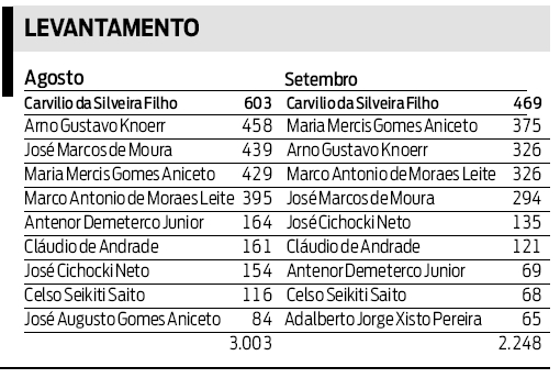 Dos 2.463 processos que, no mês passado, ainda aguardavam julgamento, nada menos de 2.248 eram de responsabilidade de apenas dez dos 120 desembargadores do Tribunal de Justiça. Mas foi entre esses campeões que mais se operou o milagre da redução. Houve magistrados que no curso de apenas um mês (de agosto para setembro) conseguiram tirar a poeira de mais de uma centena de processos atrasados e, ao mesmo tempo, manter a rotina. Nesse curto período, os atrasos reduziram-se de 3.003 para 2.248, uma diferença de 755 processos. Pelo menos um desembargador que figurava na lista dos "dez mais" de agosto já não está na de setembro (veja quadro).
