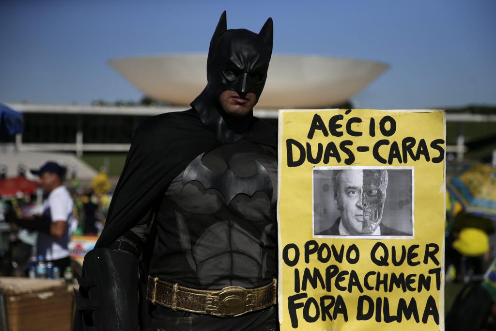 Cerca de 400 pessoas protestaram (foto) contra o governo federal em frente do Congresso Nacional nesta quarta-feira (27), segundo estimativa da Polícia Militar. Do lado de dentro, integrantes do Movimento Brasil Livre entregaram pedido de impeachment da presidente Dilma Rousseff (PT).