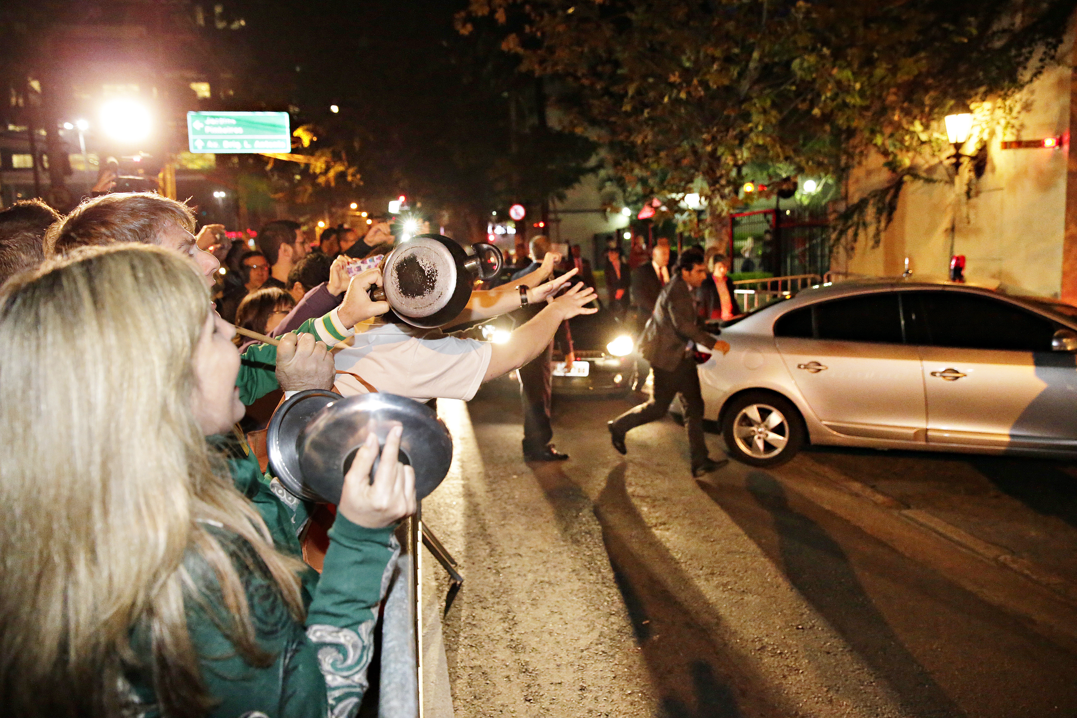 Nem um evento de Estado parece ter contado com a presença de tantas autoridades do país como o casamento dos médicos Claudia Cozer e Roberto Kalil Filho, que ocorreu no último sábado (9), em São Paulo. Ele, diretor clínico do Instituto do Coração (Incor). Ela, endocrinologista que atua no Hospital Sírio-Libanês. A lista de convidados da festa reuniu a presidente Dilma Rousseff (PT); o ex-presidente Lula (PT); os presidentes do Senado e da Câmara dos Deputados, Renan Calheiros (PMDB) e Eduardo Cunha (PMDB); os ministros da Casa Civil e da Justiça, Aloizio Mercadante e José Eduardo Cardozo; o senador José Serra (PSDB); o governador de São Paulo, Geraldo Alckmin (PSDB); alguns secretários de governo de São Paulo; e o prefeito da cidade, Fernando Haddad (PT), além de muitos outros rostos conhecidos de diversas áreas. Com a reunião de celebridades, o esquema de segurança da festa foi reforçado. Mesmo assim, na saída da festa, por volta de 22h45, cerca de 30 manifestantes bateram panelas e protestaram contra a presidente Dilma (foto).