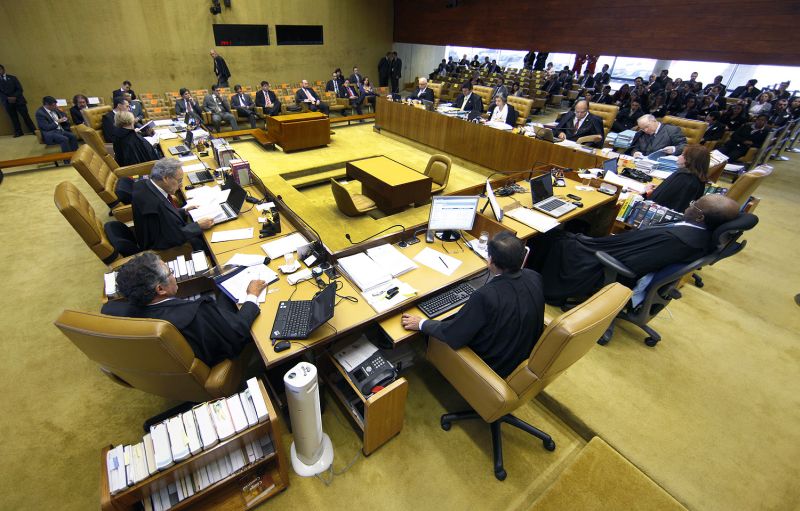 Após intervalo da sessão, o Supremo Tribunal Federal retomou o julgamento, com o voto do ministro Marco Aurélio Mello, que se posicionou contra o uso do recurso.