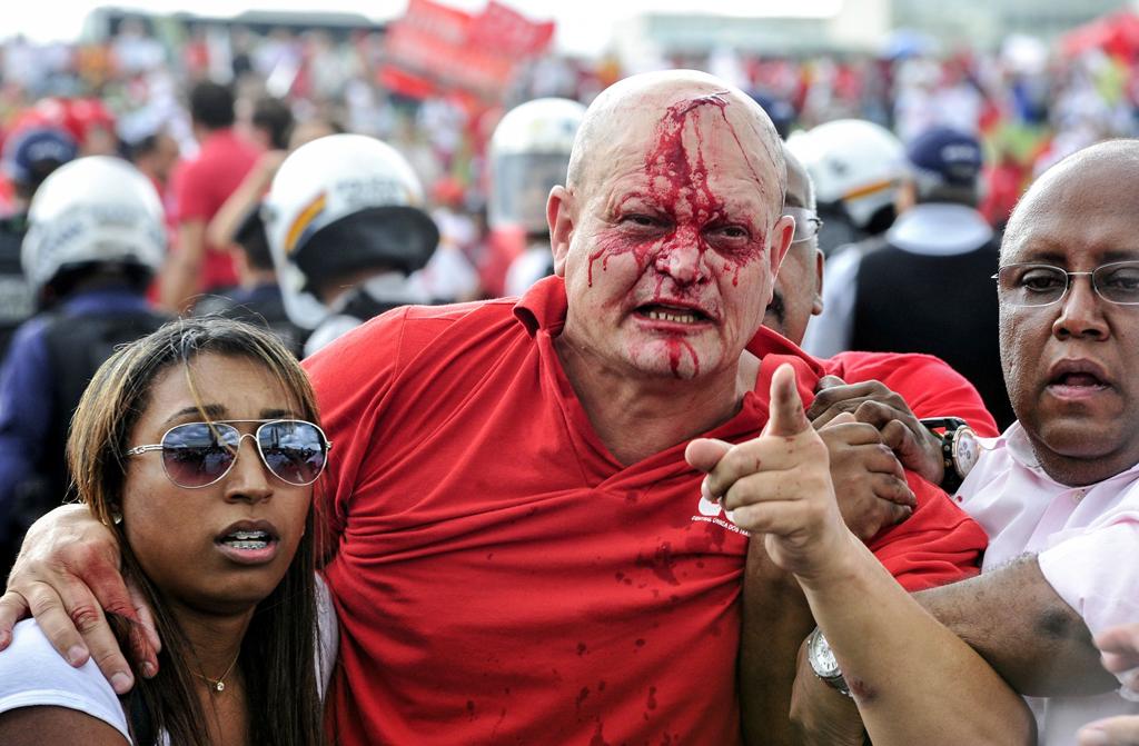 Entre os feridos, dois foram levados para o Hospital Regional da Asa Norte (HRAN) com ferimentos. São eles: Nelson Canesin, do Sindicato dos Bancários de São Paulo, que foi levado ao hospital com ferimento na testa; e Aurimar Cordeiro, do Sindicato dos Trabalhadores dos Correios de Minas Gerais, levado com um corte na mão e outro na perna.