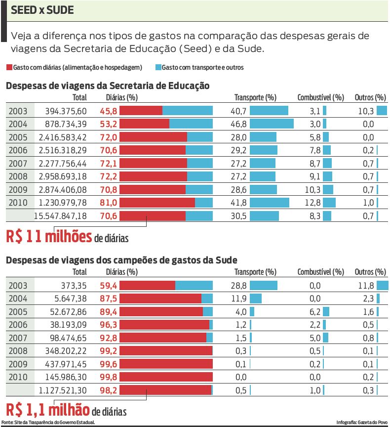 As denúncias do esquema de fraude com diárias de viagens na Secretaria de Estado da Educação (Seed) estão sendo investigadas desde junho. Atualmente, três instâncias diferentes do poder público estão debruçados na apuração do caso: a assessoria jurídica da Seed, o Ministério Público Estadual (MP) e a Secretaria Especial de Ouvidoria e Corregedoria do Estado. Hoje pela manhã, a Corregedoria divulgará o resultado de sua auditoria, feita nas diárias de viagens da Seed desde 2007.