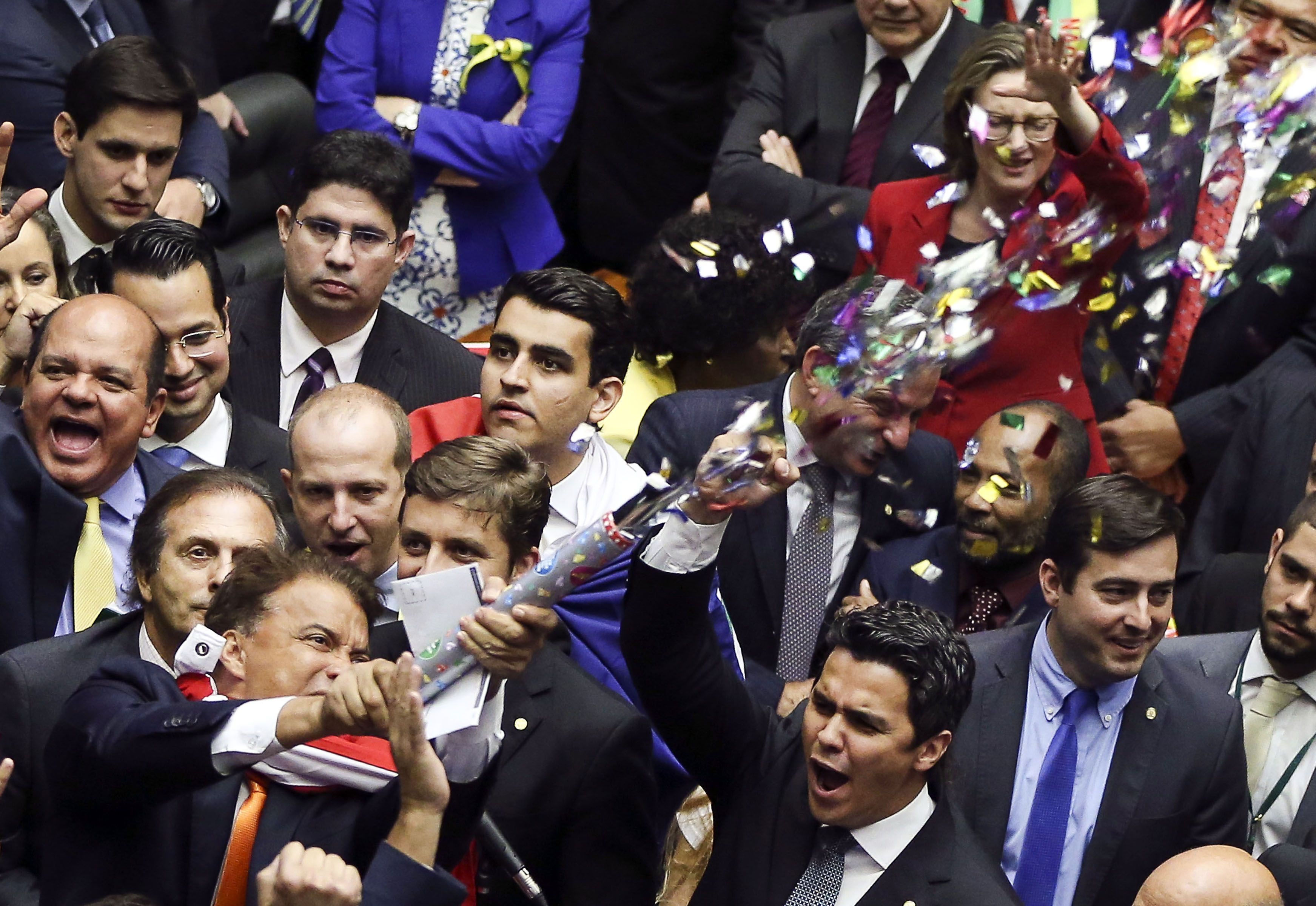 O leque de motivos que embasaram os votos dos deputados federais na sessão deste domingo (17) – na qual foi aprovada a abertura de processo de impeachment da presidente Dilma Rousseff (PT) – foi o mais amplo possível. Um Brasil melhor, o fim da corrupção e em nome das famílias foram, no entanto, o que mais constaram nos curtos discursos dos parlamentares antes da palavra sim [à implantação do processo]. Do lado oposto, parlamentares que votaram não ao impeachment clamaram pela Constituição, pela democracia e pelos direitos sociais.