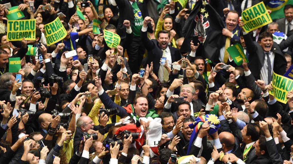 Vitoriosa no segundo turno das eleições de 2014 contra Aécio com 51,64% dos votos válidos, a presidente Dilma Rousseff saiu derrotada da Câmara neste domingo (17) com 72,8% a favor de seu impeachment. Algo próximo da pesquisa Datafolha de uma semana atrás, que indicou a vontade de 60% da população vê-la fora da presidência.