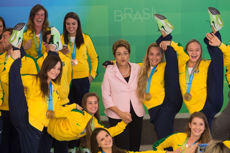 Visivelmente contrariada, Dilma reclamou com ele. A presidente também recepcionou atletas dos Jogos Pan-Americanos.
