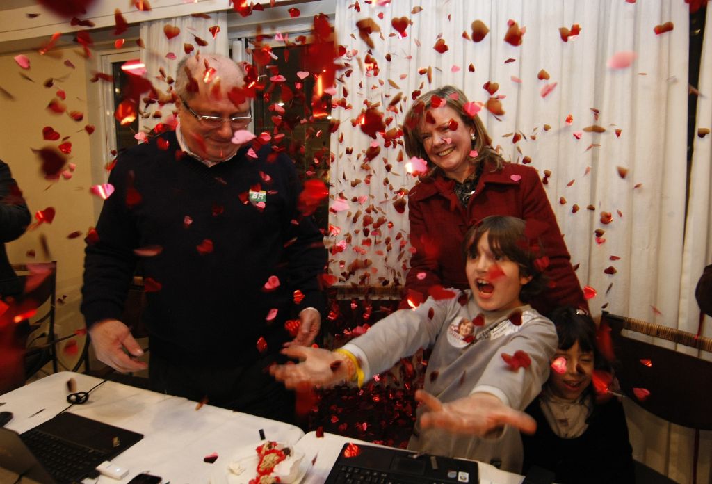 Quando Gleisi Hoffmann (PT) atingiu ontem a marca de 3 milhões de votos, por volta das 19 horas, o comitê improvisado que se instalou no salão de festas do prédio em que a petista mora, no bairro Água Verde, em Curitiba, extravasou. Em meio a balões vermelhos em formato de estrela, papéis picados e taças de espumante, o grupo de cerca de 30 pessoas, entre familiares, amigos mais próximos e assessores diretos, saudou a primeira mulher a se eleger senadora no Paraná.
