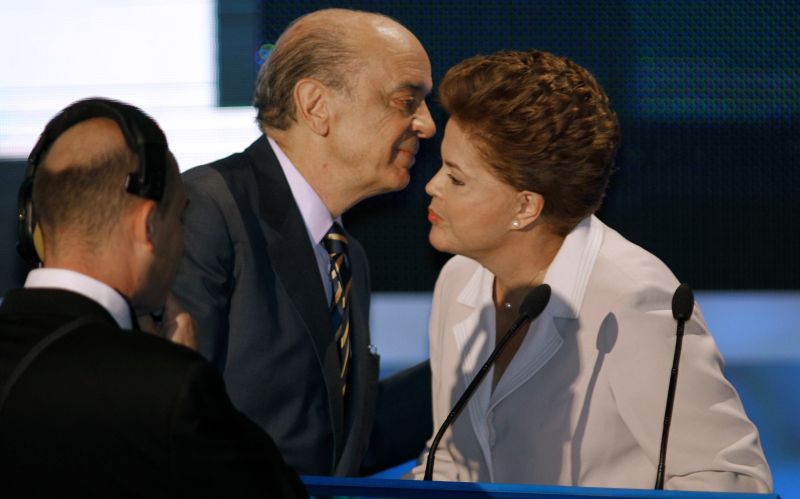 Na resposta, Serra disse que é "solidário" a quem sofre injúrias, pois ele passa pela mesma situação. Ele jogou a responsabilidade sobre as cobranças que Dilma está sofrendo sobre ela própria. "A população cobra conhecimento. Querem saber qual foi a sua história, o que fez na vida pública. Vocês [se referindo a Dilma e ao PT] confundem sempre verdades e reportagens com ataques, com coisas orquestradas", afirmou. Em seguida, lembrou que em um dos debates do primeiro turno, em meados de agosto, a candidata afirmou que era a favor da descriminalização do aborto e, agora, está dizendo que é contra. "As pessoas cobram coerência", disse ele.