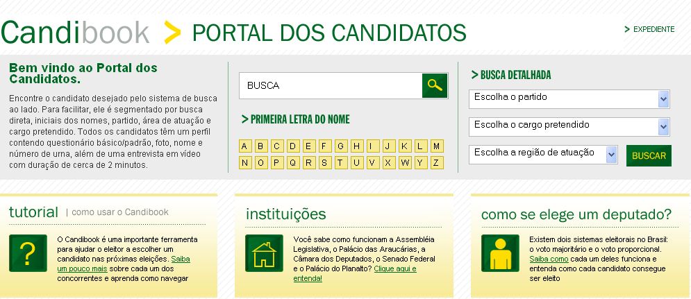 O Candibook está disponível aqui no site do Voto Consciente. A navegação dentro do site é simples: é possível buscar o candidato pelo nome, pelo cargo pretendido, pelo partido e pela região de atuação. O portal também abriga uma entrevista em vídeo com o coordenador do curso de Ciências Jurídicas da UFPR, Luís Fernando Lopes Pereira, sobre o processo eleitoral, e explicações sobre o funcionamento de cada instituição (Presidência, governo, Senado, Câmara dos Deputados e Assembleia Legislativa).
