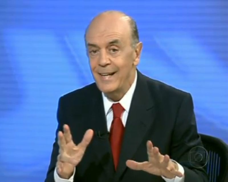 Terceiro candidato à Presidência a ser entrevistado pelo Jornal Nacional, da TV Globo, o tucano José Serra mostrou mais segurança que os adversários entrevistados anteriormente para responder às perguntas dos entrevistadores. Na tentativa de demonstrar que estava à vontade, o presidenciável até arriscou um "Já acabou?" nos instantes finais da entrevista de 12 minutos que foi ao ar ontem à noite. O candidato também aproveitou a entrevista para alfinetar a adversária Dilma Rousseff (PT) e o governo do presidente Lula.