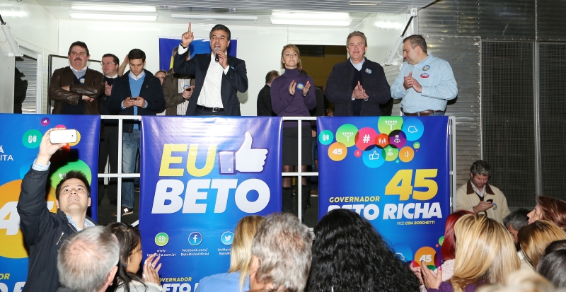Três mil funcionários públicos participaram depois do expediente de sexta-feira de um evento de campanha do governador Beto Richa (PSDB). Os funcionários ocuparam o barracão do partido no Centro Cívico, onde era distribuído material de campanha e um carro de som tocava o jingle do candidato. Também foram distribuídas fichas para que os servidores preenchessem para fazer parte da campanha por meio das redes sociais. Richa chegou acompanhado da mulher, Fernanda, de deputados estaduais, federais e secretários do estado.