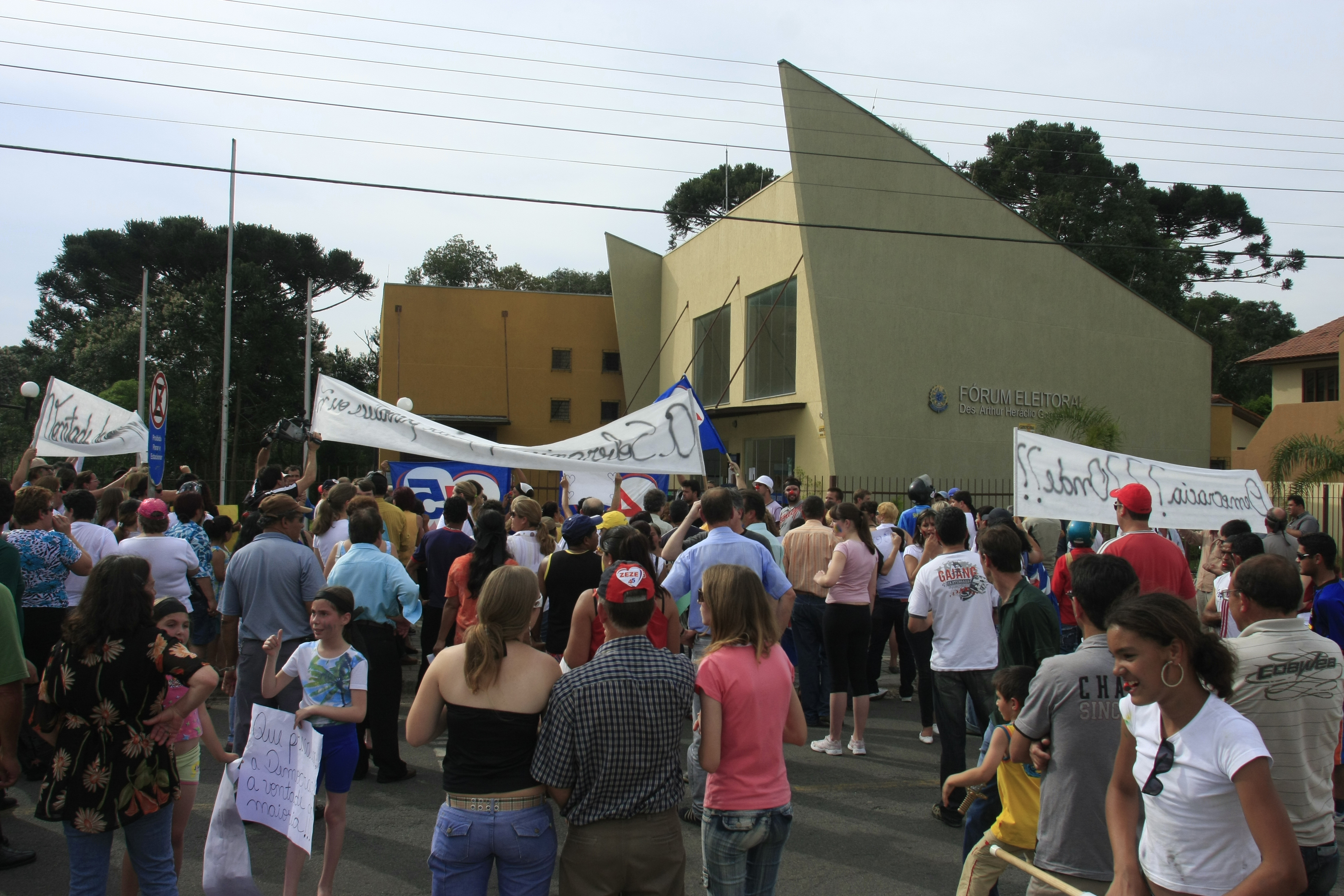 Com faixas, narizes de palhaços e com as caras pintadas, os manifestantes afirmaram que foram enganados, pois a Justiça Eleitoral deixou Zezé concorrer, mesmo com o impedimento do TRE. A decisão pela cassação foi dada pela juíza eleitoral de Araucária, Maria Cristina Chaves, no mês de junho.