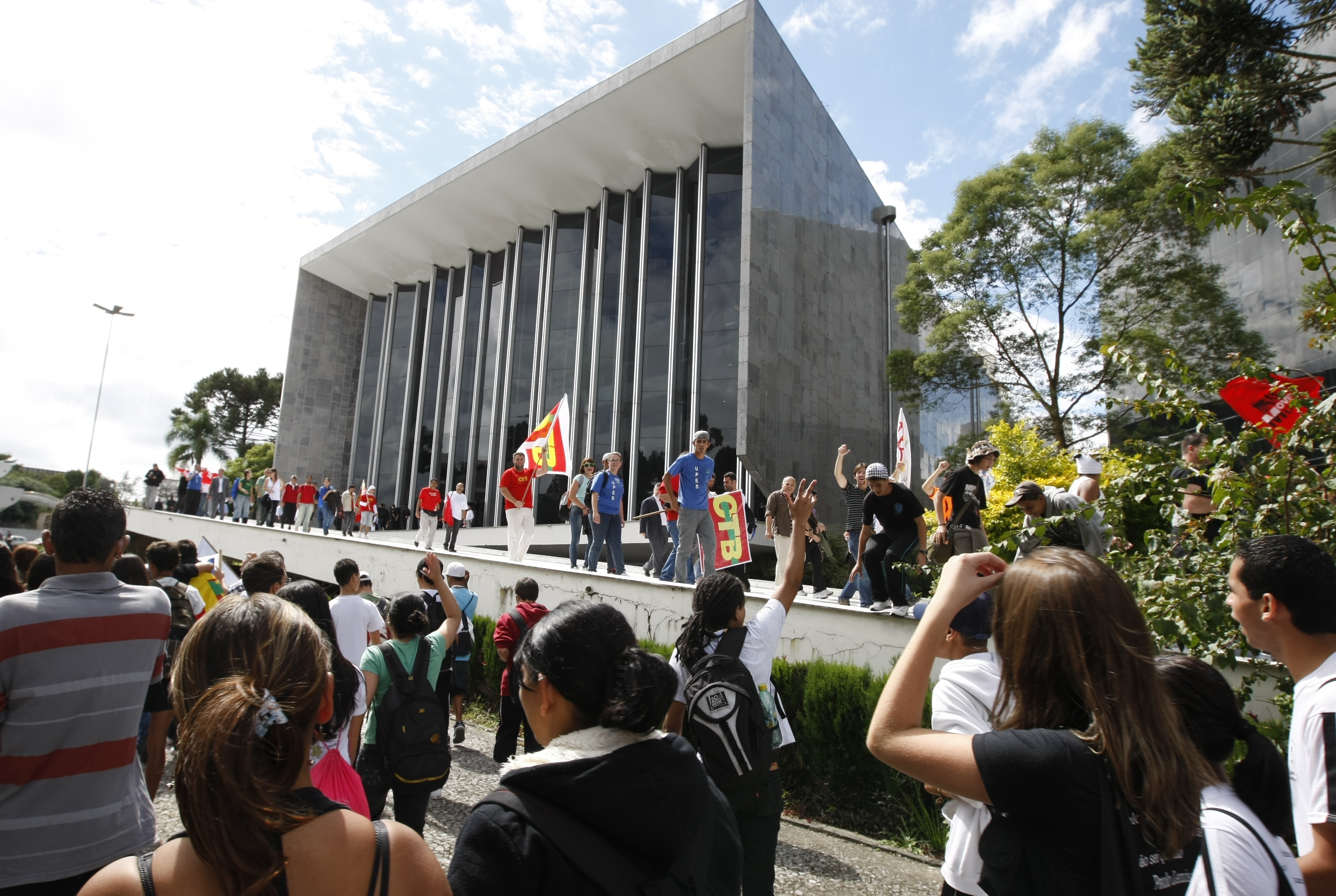 O presidente de Assembleia Legislativa do Paraná, deputado Nelson Justus (DEM), acusou estudantes de terem agredido funcionários da Casa em discurso na abertura da sessão desta quarta-feira (14). A suposta agressão teria ocorrido durante uma manifestação na Assembleia na manhã desta quarta-feira (14). Estudantes forçaram a entrada na Assembleia, derrubaram o portão e invadiram o local.