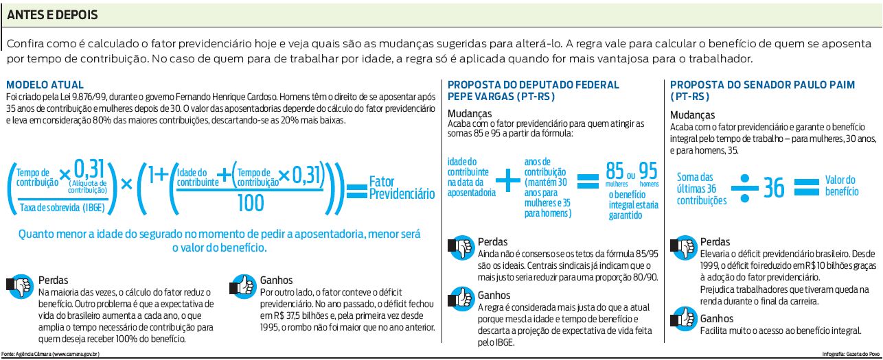 A mudança diminuiu em até 30% o valor das aposentadorias. Por outro lado, também reduziu em R$ 10 bilhões o déficit previdenciário ao longo dos últimos dez anos. Na época, o PT se posicionou radicalmente contra o fator e chegou a recorrer, sem sucesso, ao Supremo Tribunal Federal (STF).