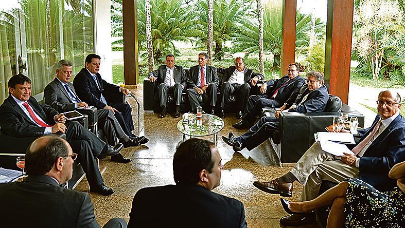 Governadores de nove estados e do Distrito Federal se reuniram nesta segunda-feira (28) em Brasília e entregaram uma pauta de reivindicações econômicas ao ministro da Fazenda, Nelson Barbosa, que prometeu nas próximas semanas regulamentar mudanças nos indexadores das dívidas dos executivos estaduais. Já a União pediu apoio para a aprovação da recriação da CPMF em 2016.