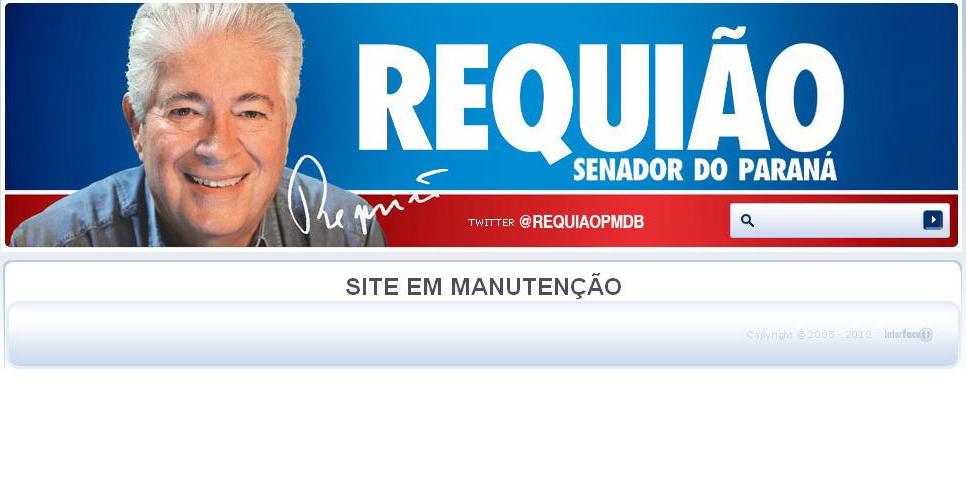 O senador paranaense Roberto Requião (PMDB-PR) não escapou à onda de invasões de sites promovidas por hackers no país e teve seu site invadido pelo grupo. Agora, ao acessar a página, o eleitor apenas terá uma justificativa de que o site está em manutenção.