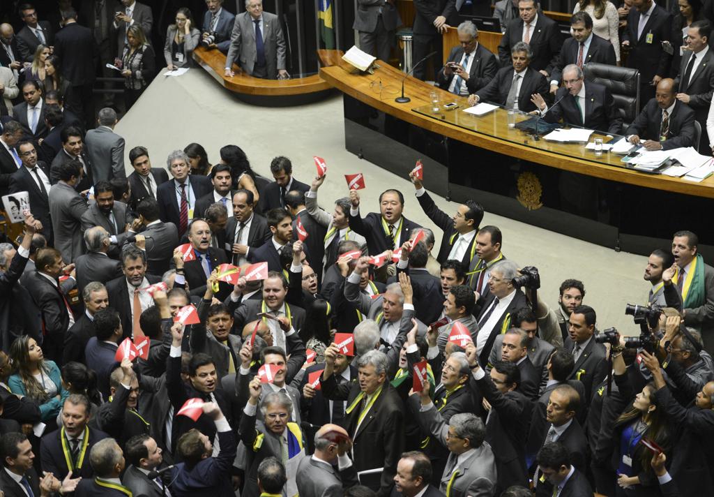 No fim, a lista com os nomes dos 65 parlamentares indicados pelos partidos foi aprovada por 433 votos sim e apenas um contrário.
