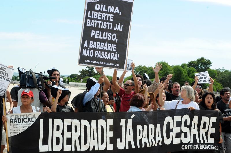 A primeira sessão do Supremo, em 2011, foi marcada por protestos pedindo a libertação do ex-ativista italiano. Com instrumentos musicais e faixas, os manifestantes ocuparam a Praça dos Três Poderes, em frente ao STF.