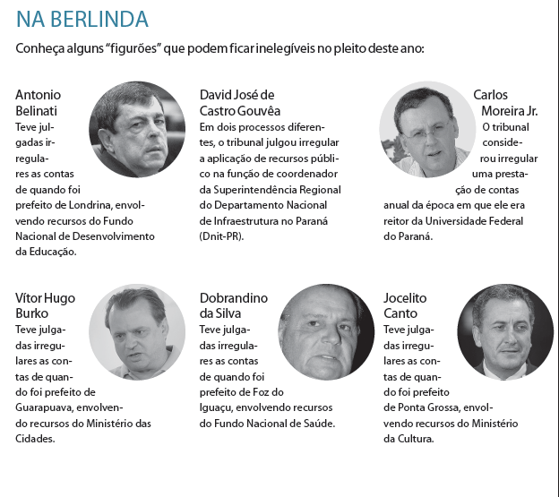 A maioria dos casos envolve ex-prefeitos, ex-secretários e ex-diretores de diversos órgãos. Entre os paranaenses que constam da lista, pelo menos seis ocuparam cargos bastante relevantes (veja quadro acima). Antonio Belinati, por exemplo, teve julgadas irregulares pelo TCU as contas de quando foi prefeito de Londrina, envolvendo recursos do Fundo Nacional de Desenvolvimento da Educação. Na eleição de 2008, uma reprovação de contas no Tribunal de Contas do Estado (TC) fez com que ele tivesse o registro de candidatura a prefeito impugnado pelo Tribunal Superior Eleitoral (TSE).