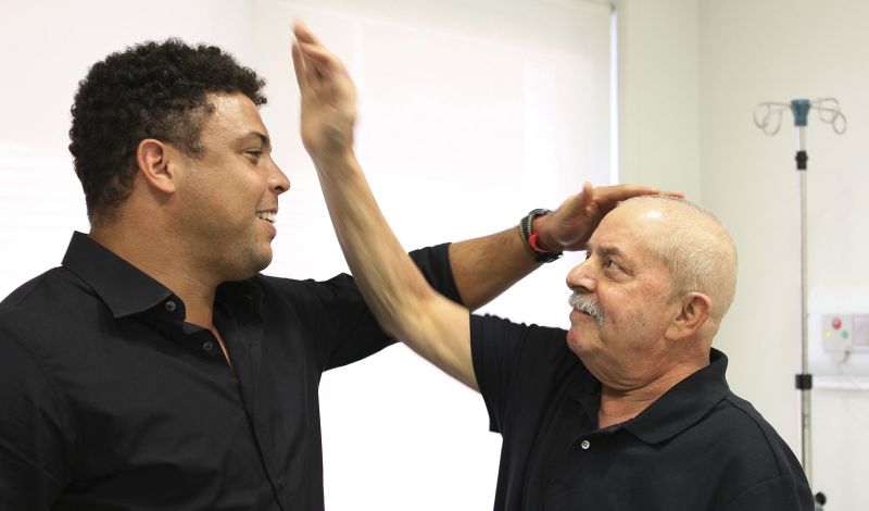 O ex-presidente Luiz Inácio Lula da Silva recebeu ontem a visita do ex-jogador Ronaldo Nazário no Hospital Sírio-Libanês, em São Paulo. O encontro aconteceu ao meio-dia e durou cerca de 30 minutos. Lula, que foi ao hospital para uma sessão de fonoaudiologia, já havia recebido na semana passada uma visita do ex-presidente Fernando Henrique Cardoso. Em janeiro, o ex-presidente recebeu visita do ator Reynaldo Gianecchini. Ambos faziam tratamento no mesmo hospital, Gianecchini contra um câncer no sistema linfático e Lula contra um tumor na laringe.